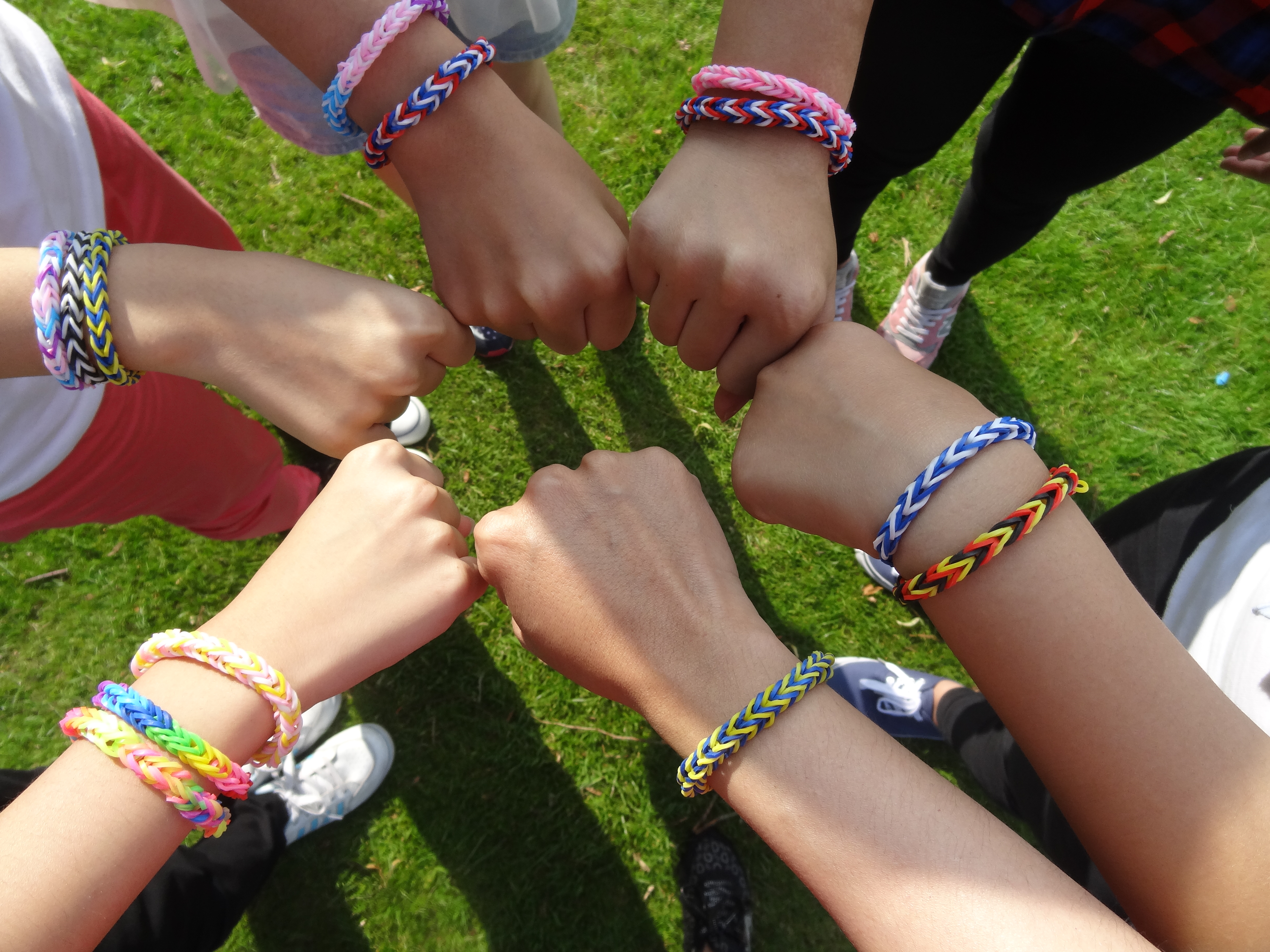 女孩們在上次串手環課程後,串出心得了,在綠油油的大草坪上與外國朋友一起串手環,可是生平第一次哦!看看我們的成果,是不是很有設計感啊!