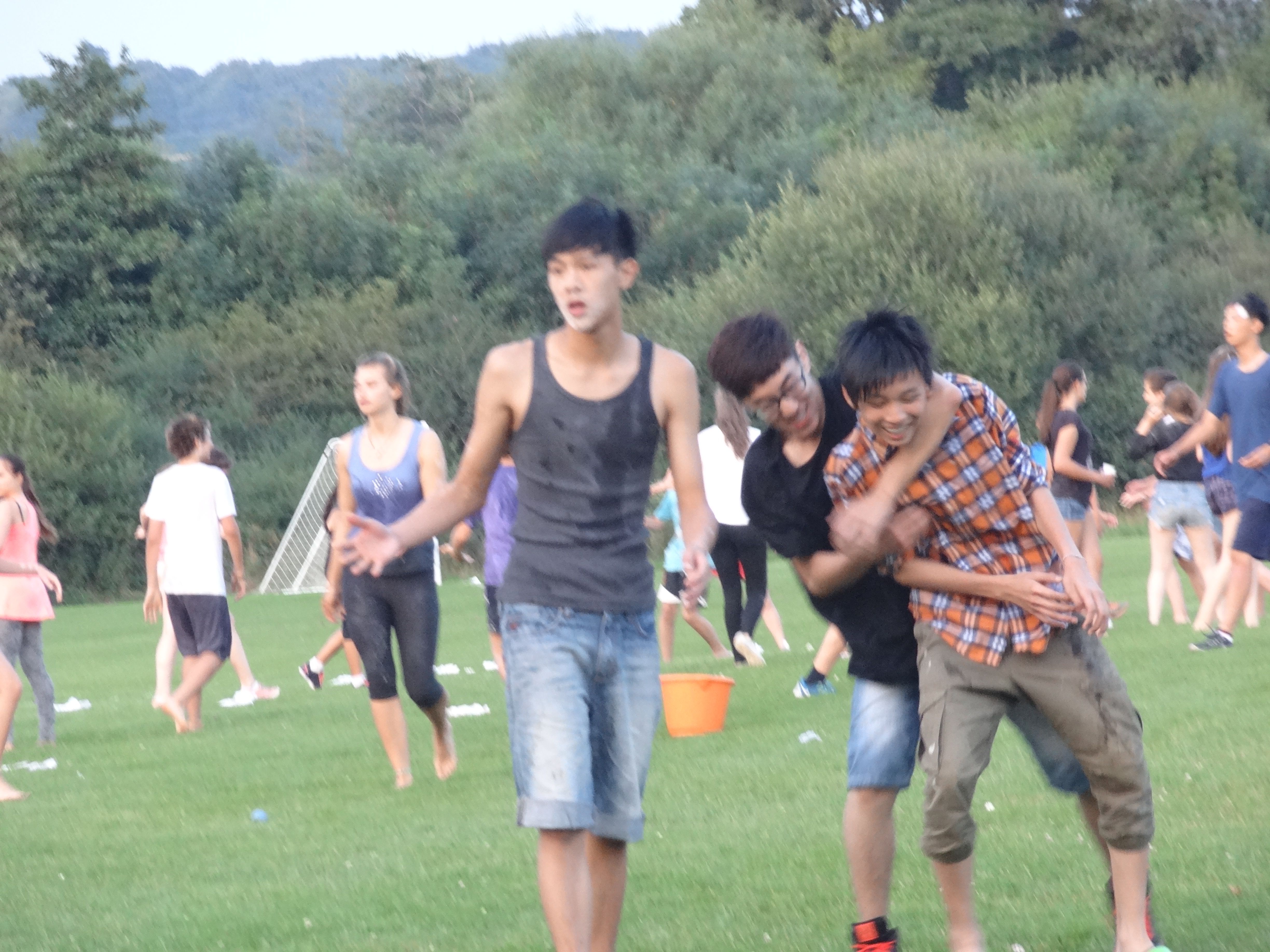 最後所有人(兩百多人)全玩再一起,開始打水仗、互丟水球、雞蛋、互抹刮鬍泡追逐,開心極了。
